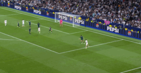第42分钟,皇马在禁区里连续传球,迪亚斯挑传,后插上的巴尔韦德连停带过,挑球过掉了格伊,随后低射破门。3-0!短短的22分钟时间里,巴尔韦德连进3球,疯狂上演帽子戏法。伯纳乌8万人陷入狂欢!